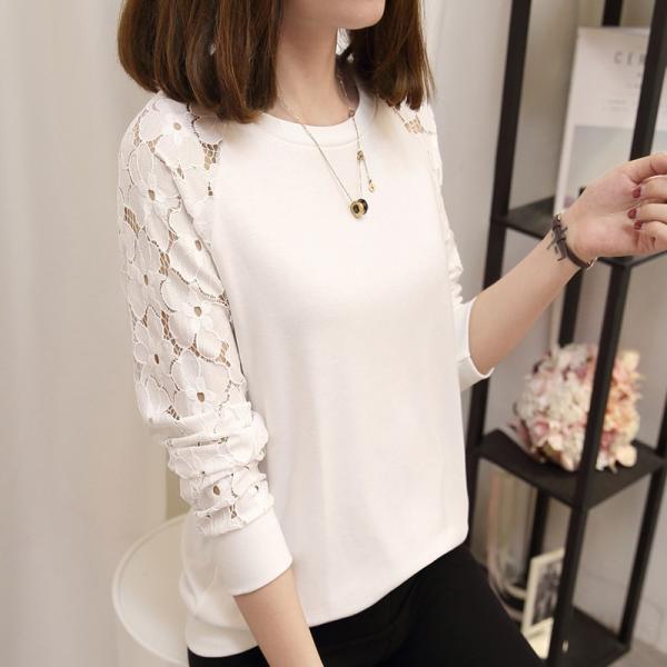 カットソー シャツ 長袖 カジュアルトップス レース