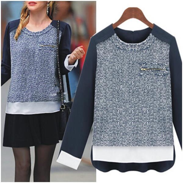 トップス シャツ 長袖 切り替え デザイン カジュアル プルオーバー レイヤード風 胸ポケット バイカラー オシャレ お出かけ コーディネート 自在 2017