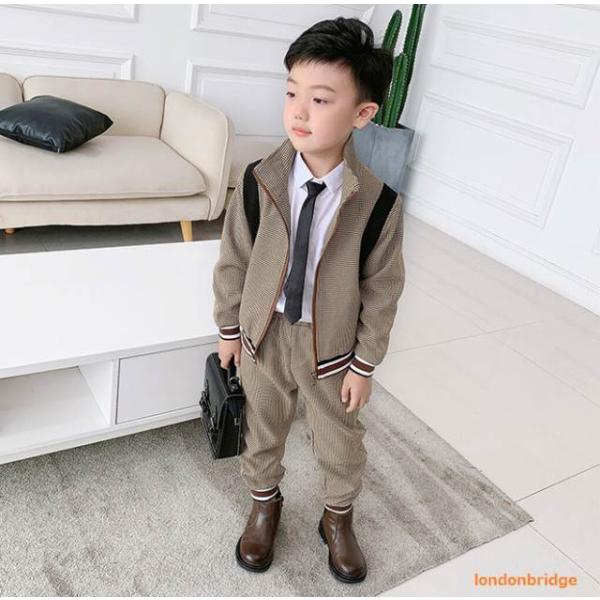 【韓国風子供服☆ブルゾン パンツ セットアップ】子供服 キッズ スーツ セットアップ 男の子 男子 キッズサイズ 子供サイズ 上下セット ブルゾン ジャケット フォーマル カジュアル おしゃれ 90-140cm 秋 春 ネクタイ 4点セット 韓国ファッション 七五三 発表会 結婚式 普段着 入園入学 卒園卒業 送料無料