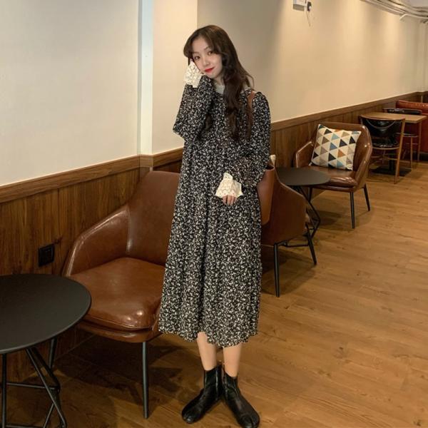 ワンピース チュニック ロング マキシ丈ワンピース 長袖 アンティーク調 小花柄ワンピース ティアードワンピース 人気商品 送料無料