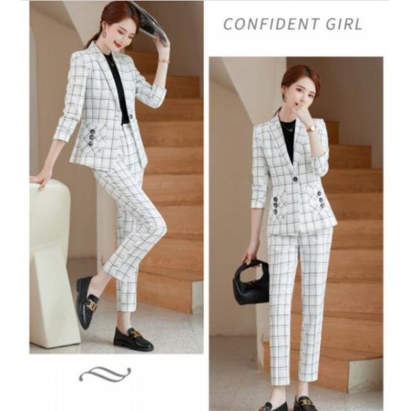 スーツ レディース フォーマル チェック柄 ジャケット パンツ セットアップ S-4XL オフィス 通勤 母親 結婚式 入園入学 卒園卒業