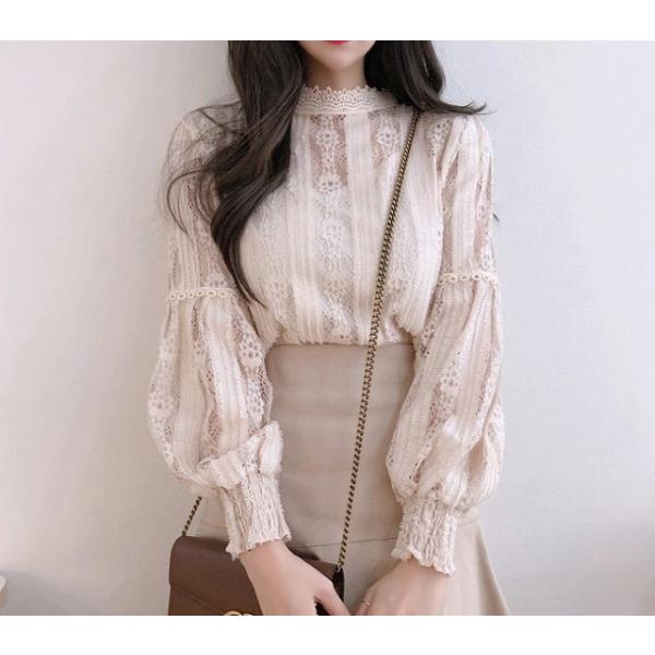 トップス シャツ ブラウス レディース 総レース 大人 かわいい ボリューム袖 ランタンスリーブ 清楚 通勤 通学 春 人気商品 送料無料