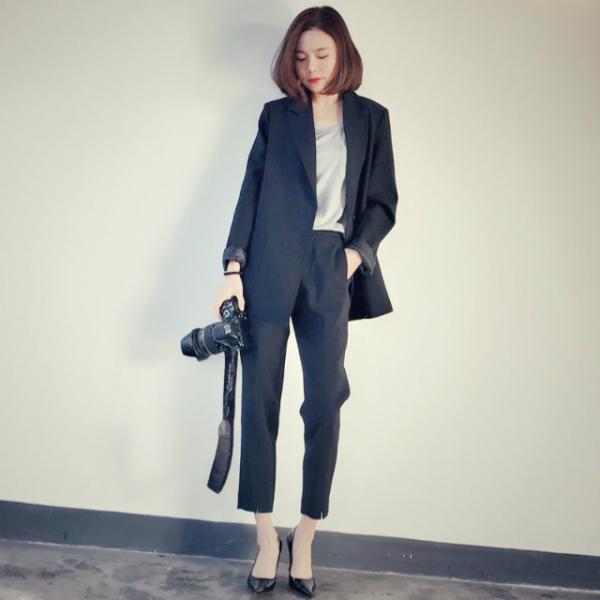 レディースファッション スーツ フォーマル その他スーツ フォーマル ジャケット丈長 ゆったり ブラック スーツ 人気商品 送料無料