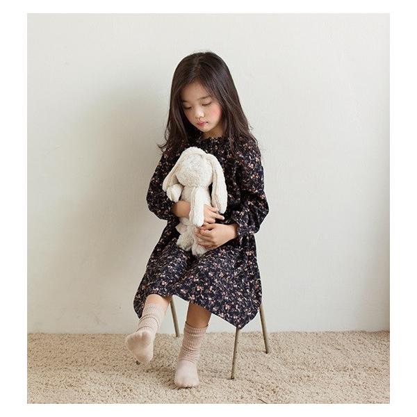 秋春 ネイビー 小花柄ワンピース 子供服 ナチュラル おしゃれ ガーリー 女の子服 送料無料 お出かけ着 ひざ丈スカート