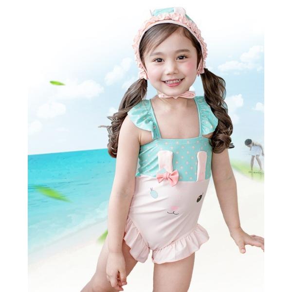 キッズ 子ども服 子ども水着 水泳用品 女の子用水着 アニマルモチーフ 女の子 水着 キッズ水着 水着セット 帽子付き ウサギ 送料無料