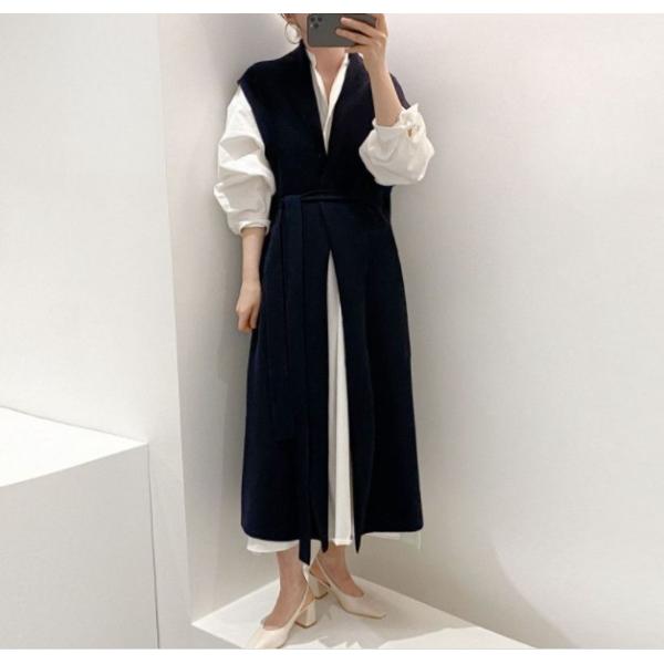 ベスト ジレ レディース カジュアル 秋冬ロングベスト ゆるニットトップス レイヤード 韓国ファッション 大人カジュアル 送料無料