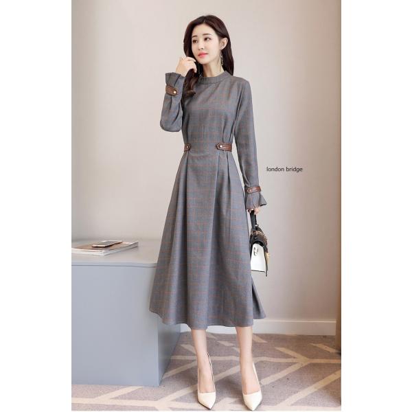落ち着いた雰囲気で フォーマル レディース チェックワンピース 大きいサイズ ひざ下ワンピース おしゃれ 秋 冬 春 人気商品 送料無料