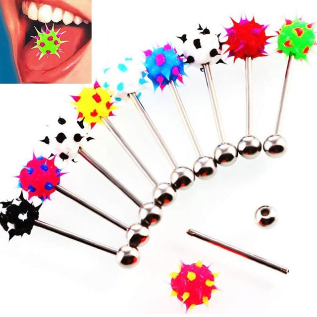 [14G ストレートバーベル ボディピアス] シリコンサボテンボール舌ピアス 14ゲージ 14ga サージカルステンレス316L カラフル さぼてん トゲトゲ シタピアス タンピ ベロピアス メンズ レディース 柔らかい カラフル 人気 ユニーク 面白い 彼氏 彼女 ボディーピアス アソート