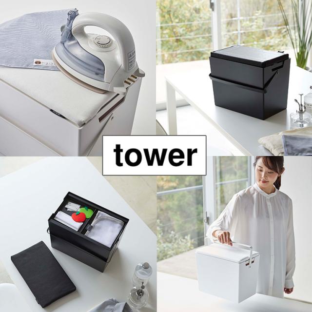 タワー 山崎実業 tower アイロン掛けできる蓋付きアイロン収納ケース 5457 5458 ホワイト ブラック