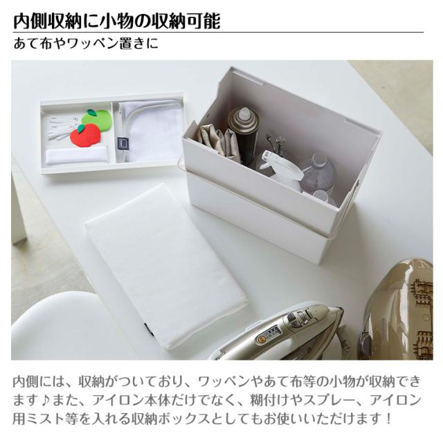 またアイロン本体だけでなく、糊付けスプレーやアイロン用ミストなどを入れる収納ボックスとしても使い勝手抜群。