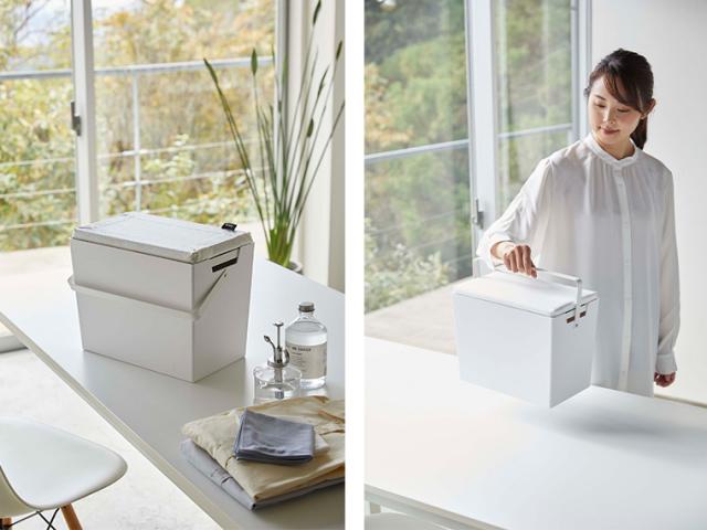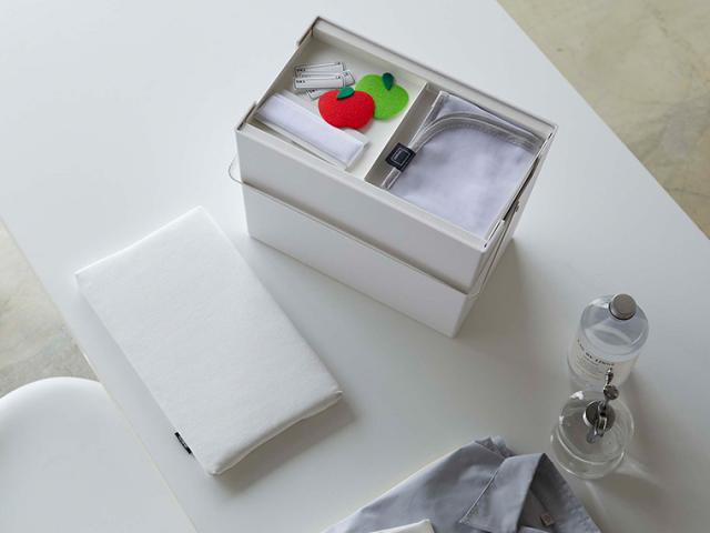 蓋部分をそのままアイロン台として使える、収納ボックスです。内側にトレーもついており、当て布やパッチなど小物を入れることもできます。