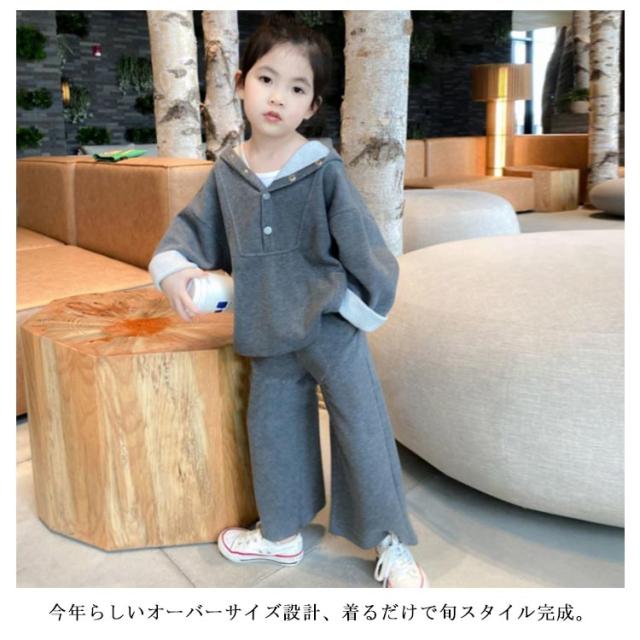 子供服 パーカー セットアップ オーバーサイズ ワイドパンツ ジャージ スウェット 女の子 ジュニア 小学生 韓国 秋新作 春秋 90 100 110 120 130 140 150cm
