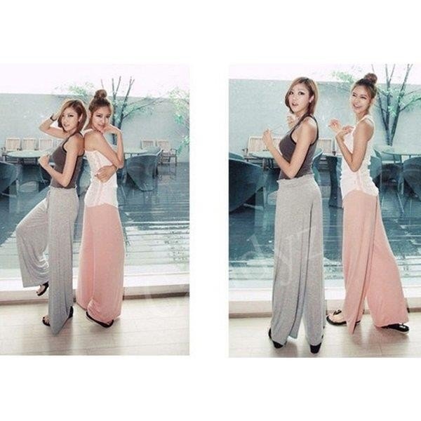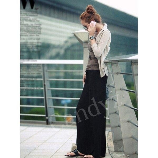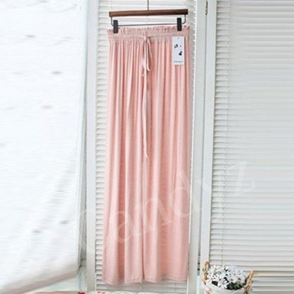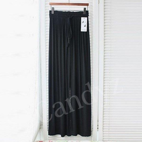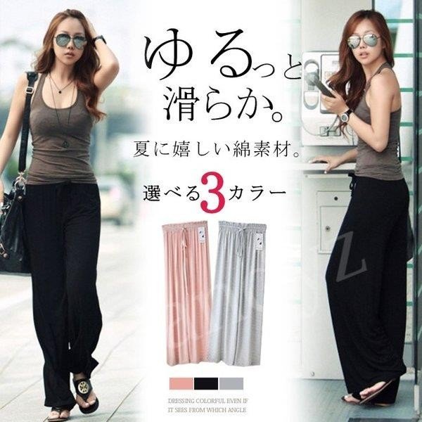 ワイドパンツ レディース レーヨン ストレッチ ヨガパンツ 無地 ロング リボン ウエストゴム ゆったり 落ち感 ガウチョパン
