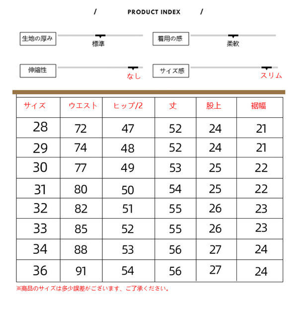 | サイズ | [28] [29] [30] [31] [32] [33] [34] [36] |