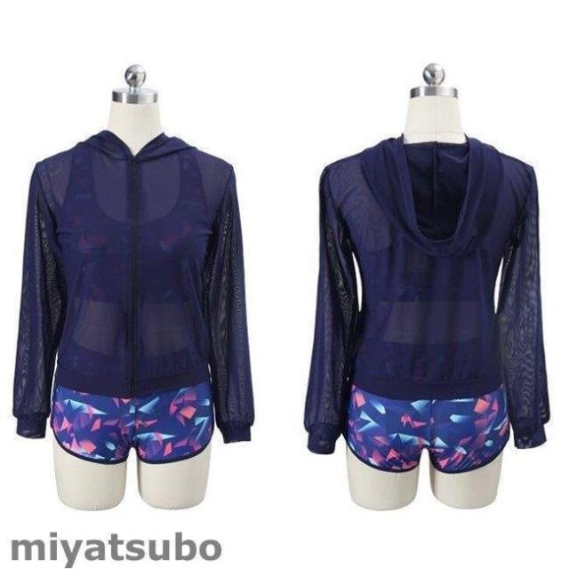 体型カバー 水着 レディース 3点セット かわいい タンクトップ レギンス 長袖ラッシュパーカー お洒落 UV対策 日焼け防止 20代 30代 40代