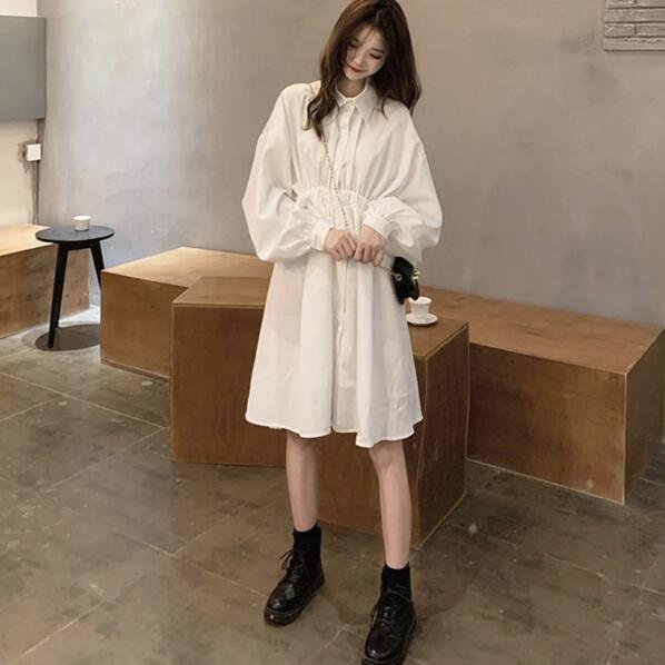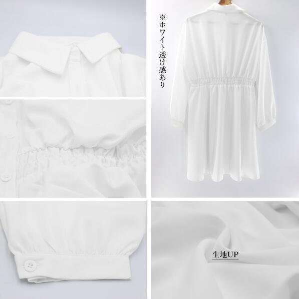 シャツワンピース 長袖 レディース ウエストマーク チュニックワンピ ボリューム袖 おしゃれ ミニワンピース きれいめ 大人かわいい