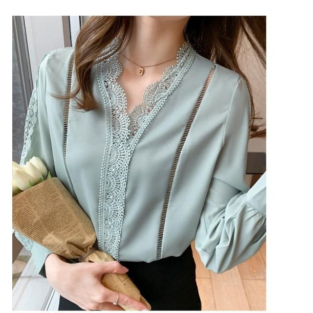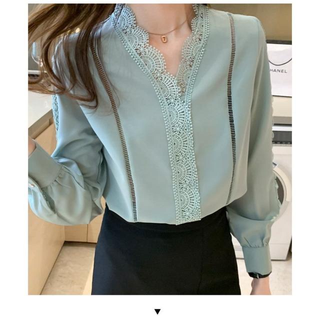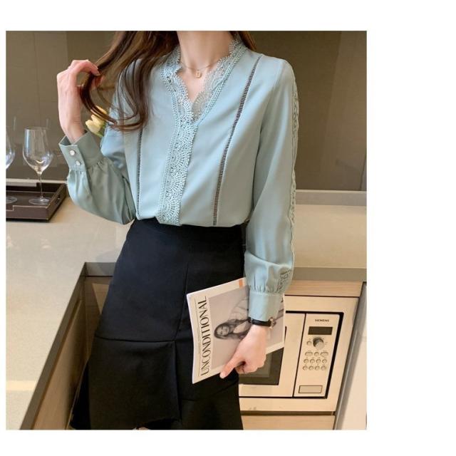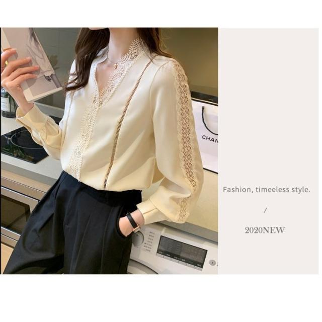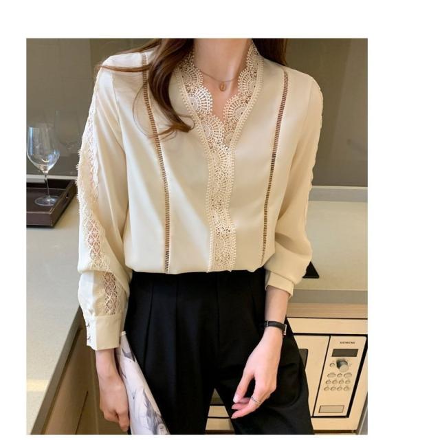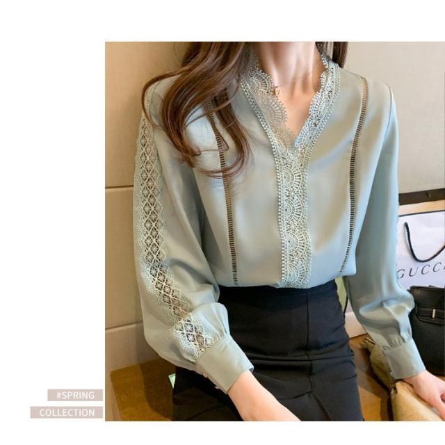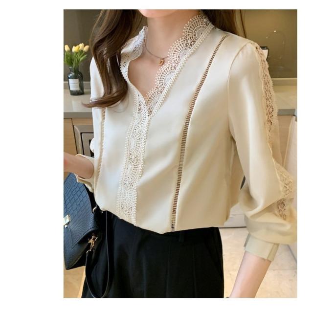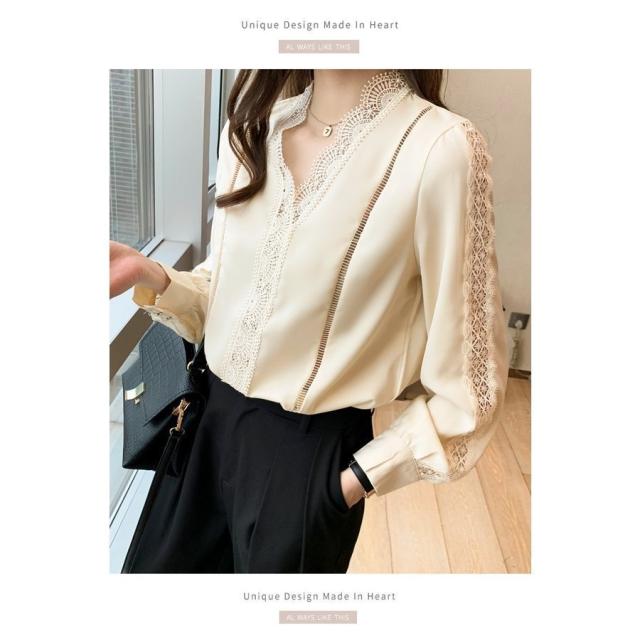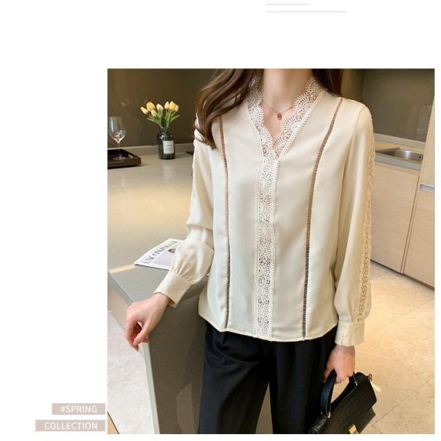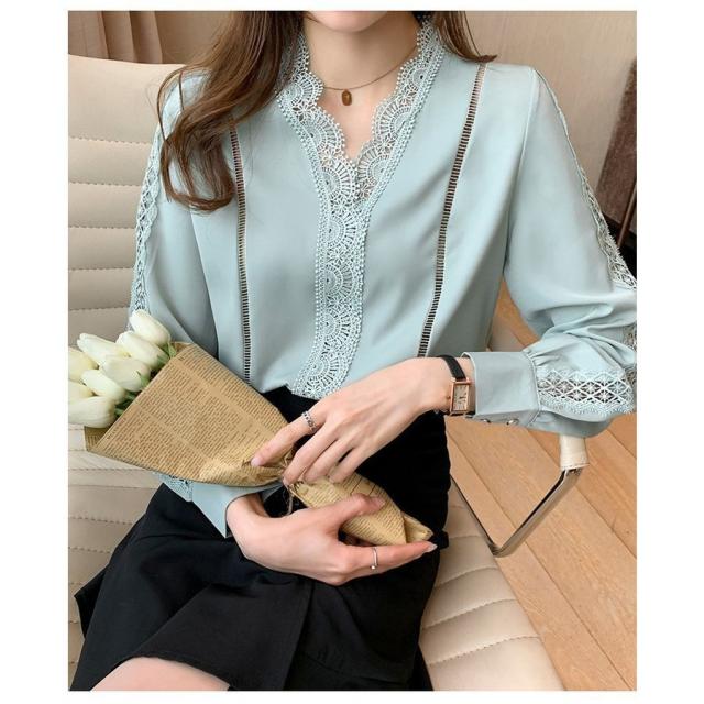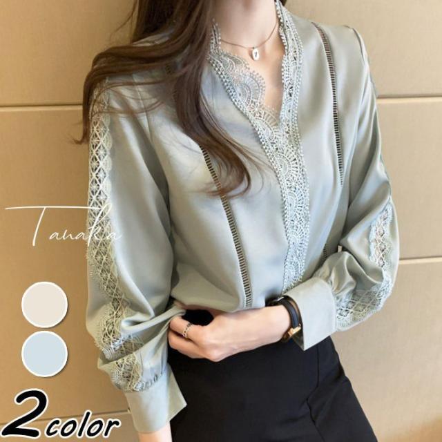 ブラウス レディース きれいめ 春 夏 秋 おしゃれ ブラウス シャツ 長袖トップス レースvネックブラウス 大人 通勤 ゆったり シャツ 30代 40代 オフィス