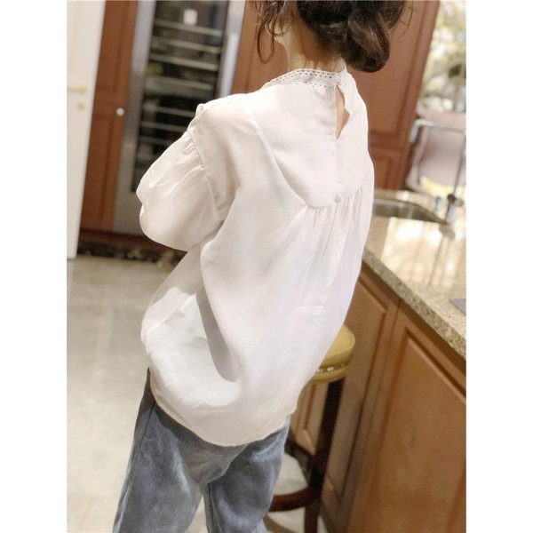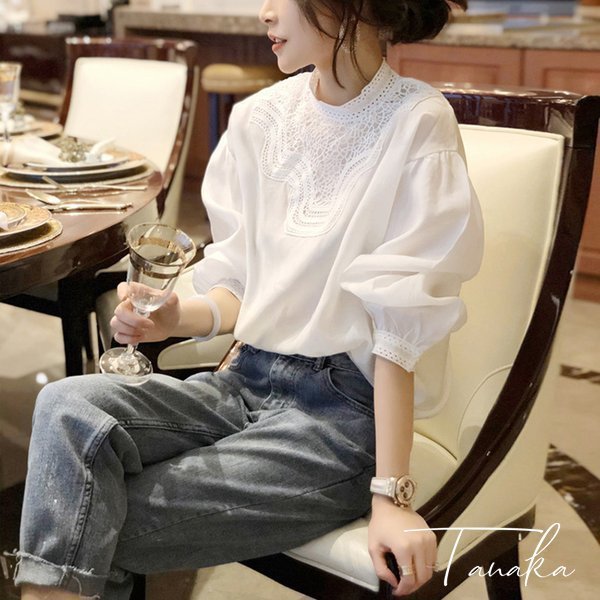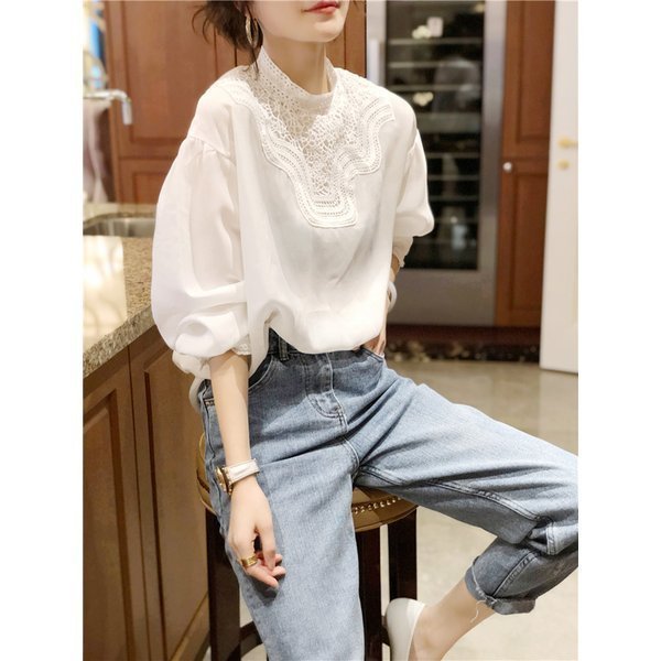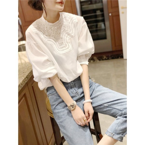 ブラウスレディース 夏 秋 新作 おしゃれ ブラウス白Tシャツ長袖トップス白レースブラウス スリーブ 大人 上品 韓国風 大きいサイズ シャツ 30代 40代
