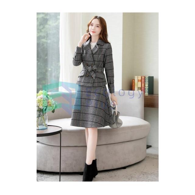 セットアップ レデース 秋 冬 スカート スーツジャケット 2点セット ウール混コート お洒落 上品 大人 通勤 二次会 入学式 入園式 ママコーデ 30代 40代