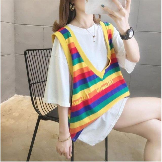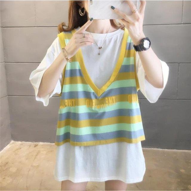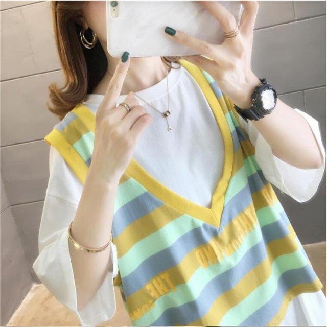 Tシャツ レディース T半袖 シャツ*ベスト 着痩せ 秋 夏 パーカー カジュアル ブラウス 春 夏 大きいサイズ 体型カバー