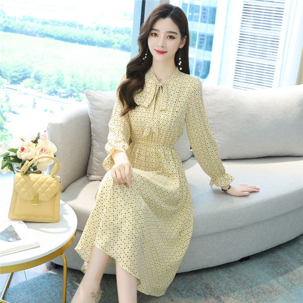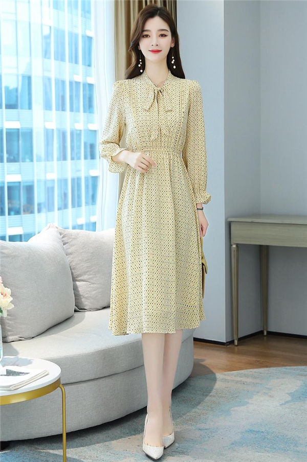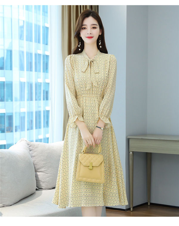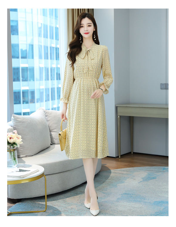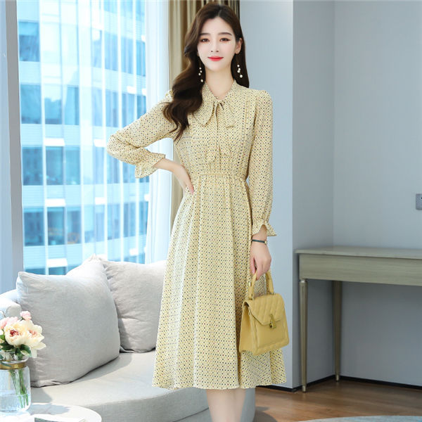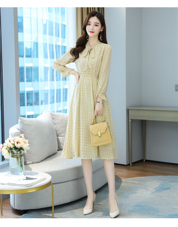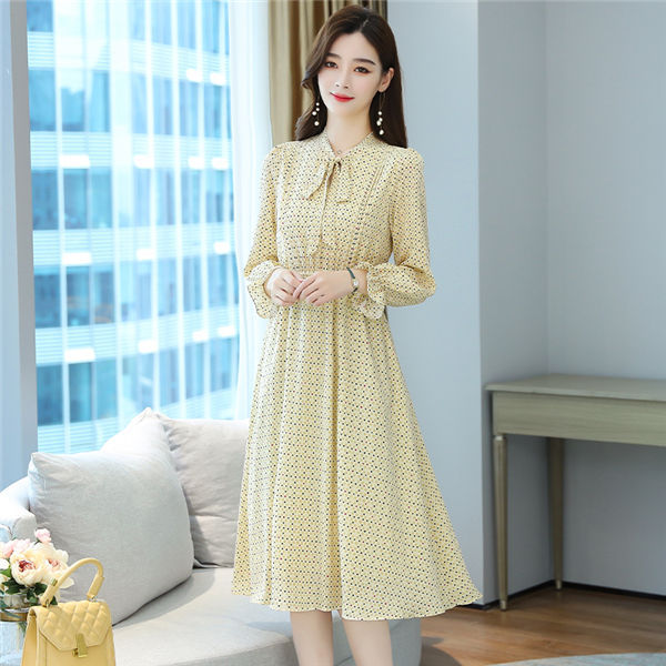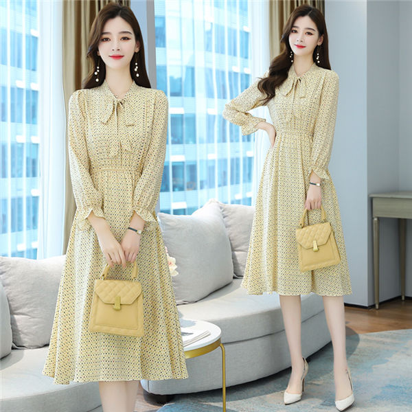 ワンピース レディース 長袖 ワンピース 総柄 ロングワンピ シフォンワンピ 可愛い オシャレ長袖 総柄ワンピース 秋物