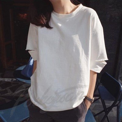 夏 韓国風 純綿 ホワイト Tシャツ レディース カジュアル 新作 丸首 シンプル 定番
