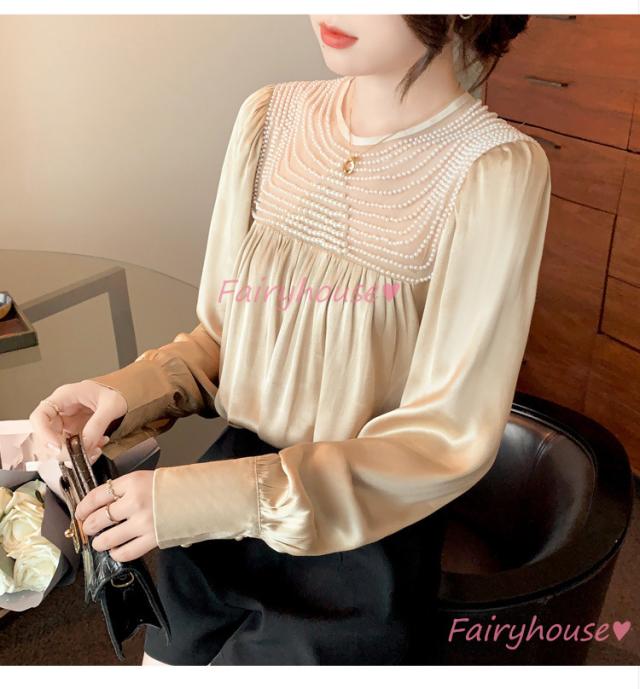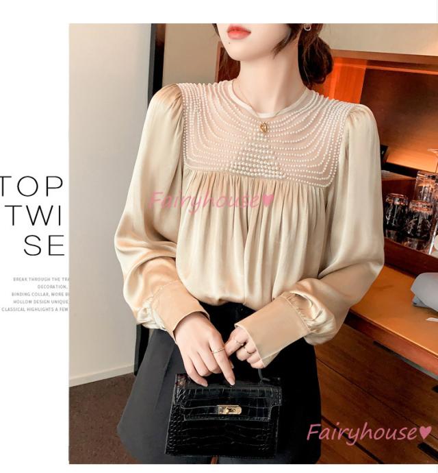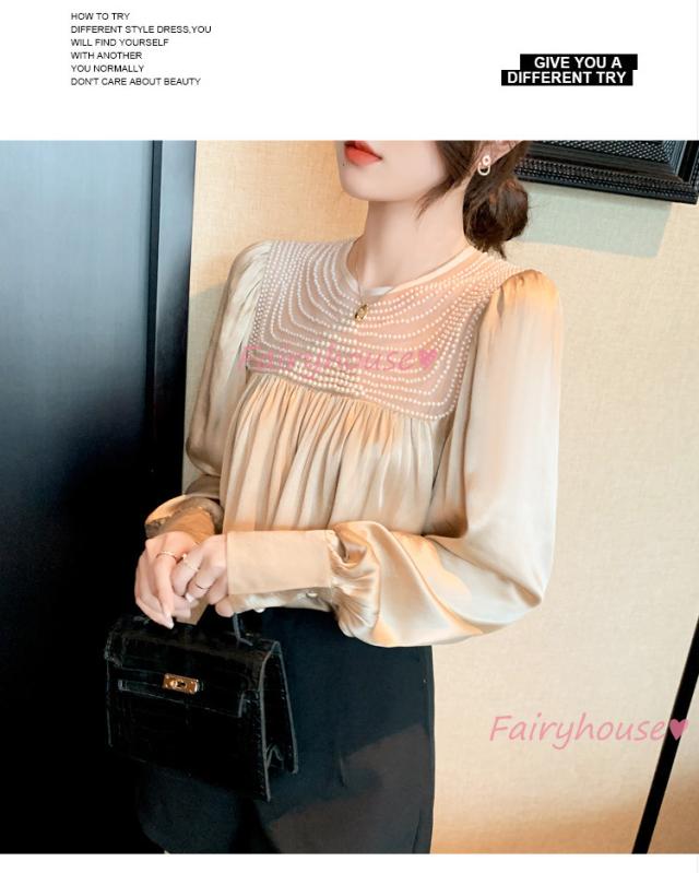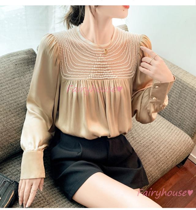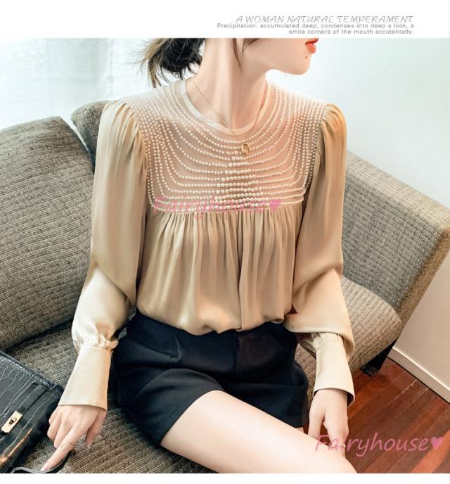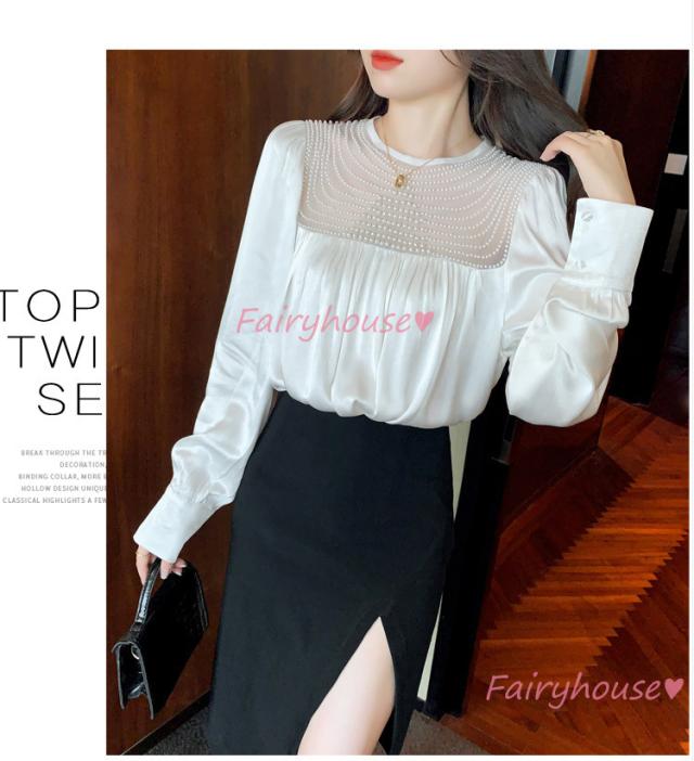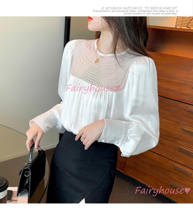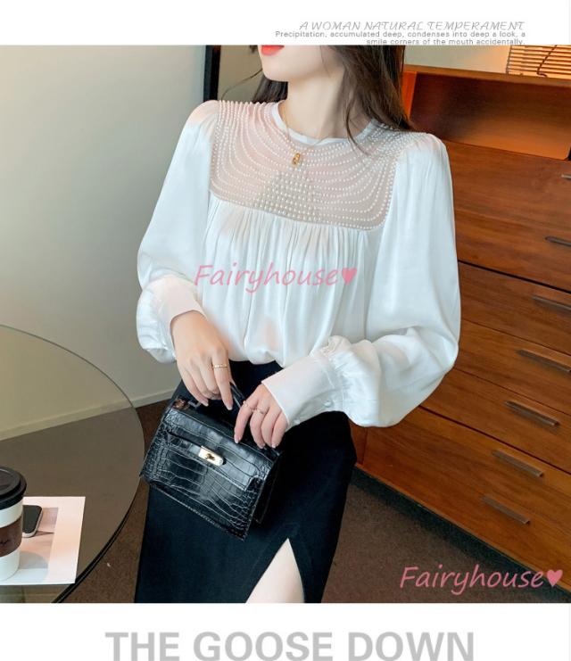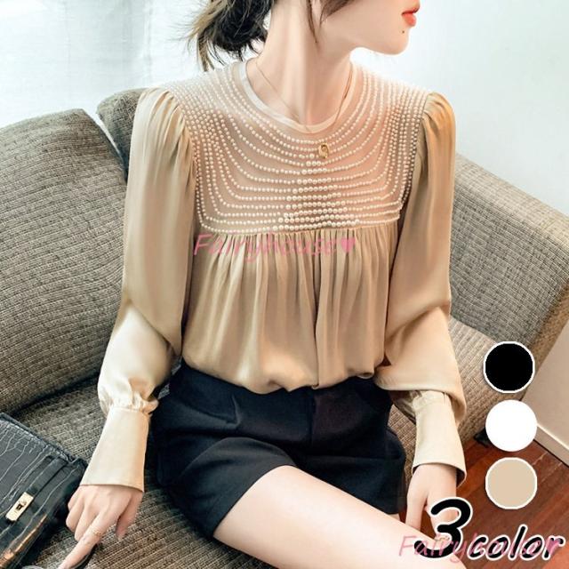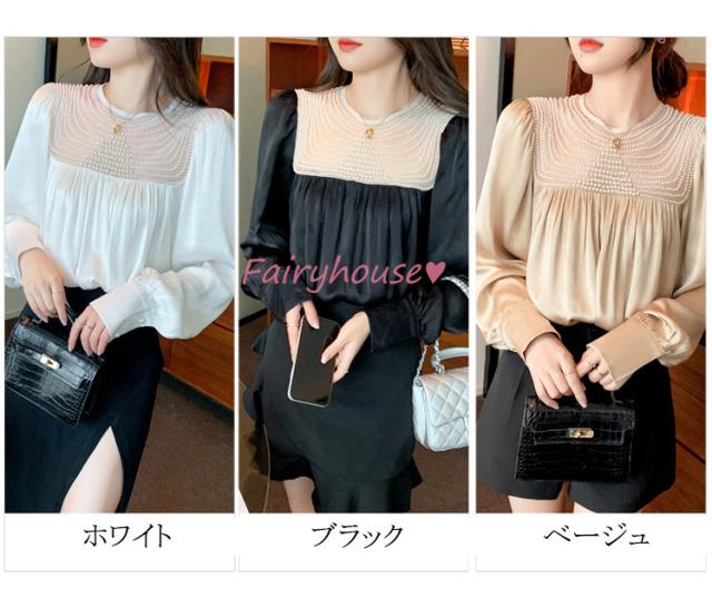 ブラウス レディース 長袖ブラウス 秋冬 オフィスシャツ 白パフスリーブ オシャレブラウス レショントップス 韓国風 大人 上品 通勤OL ゆったり 40代 50代