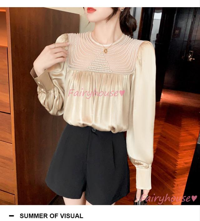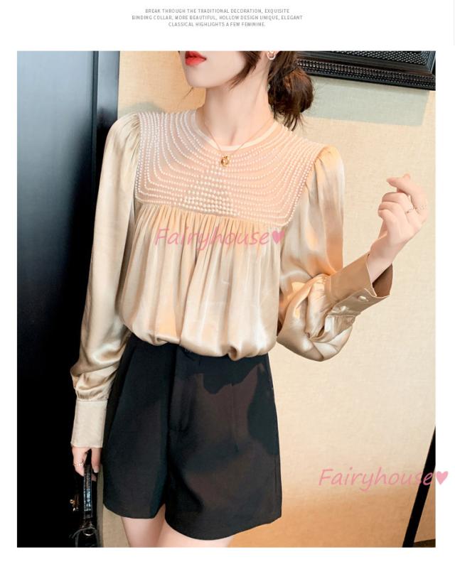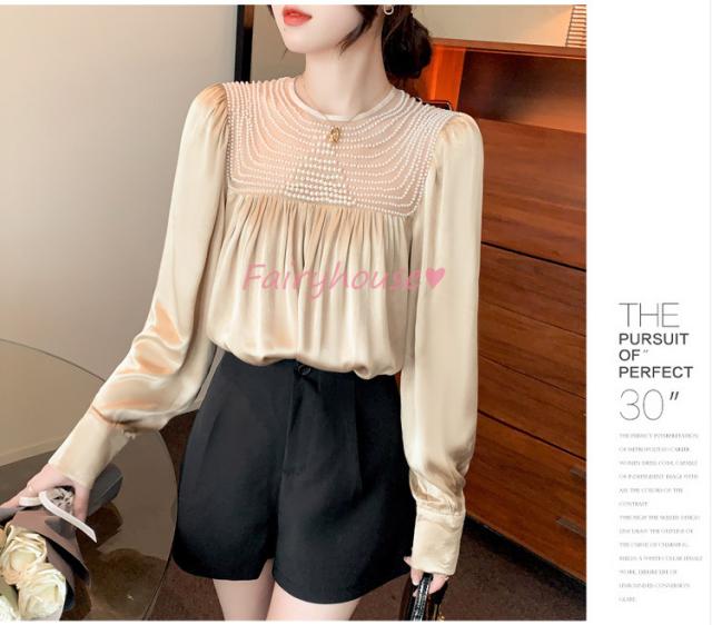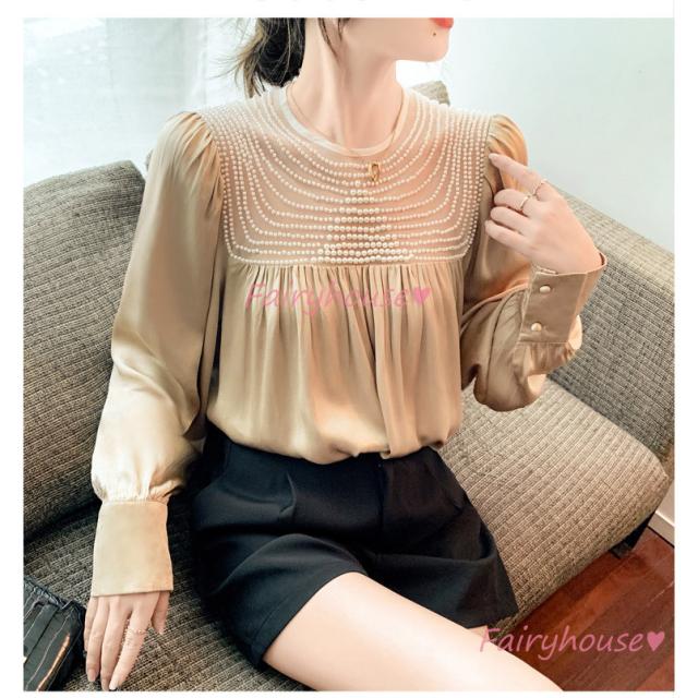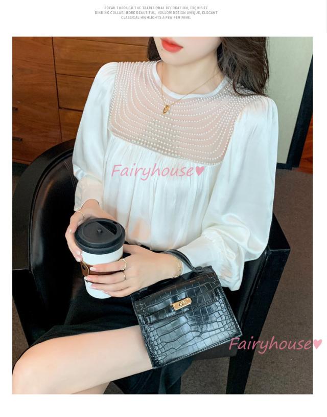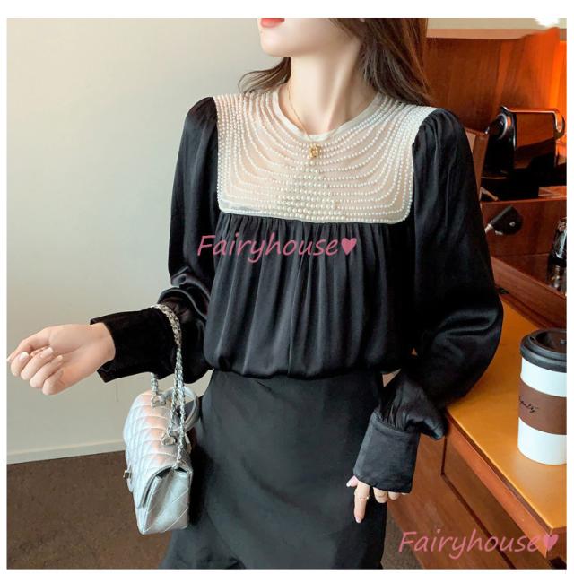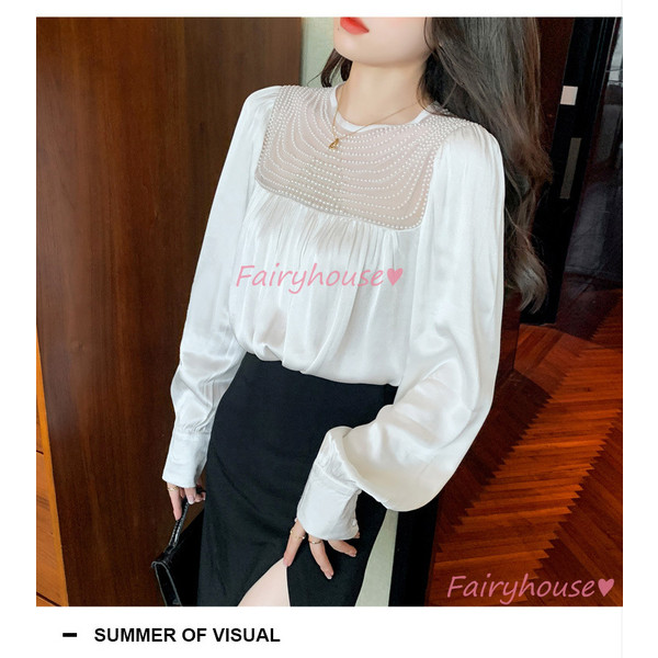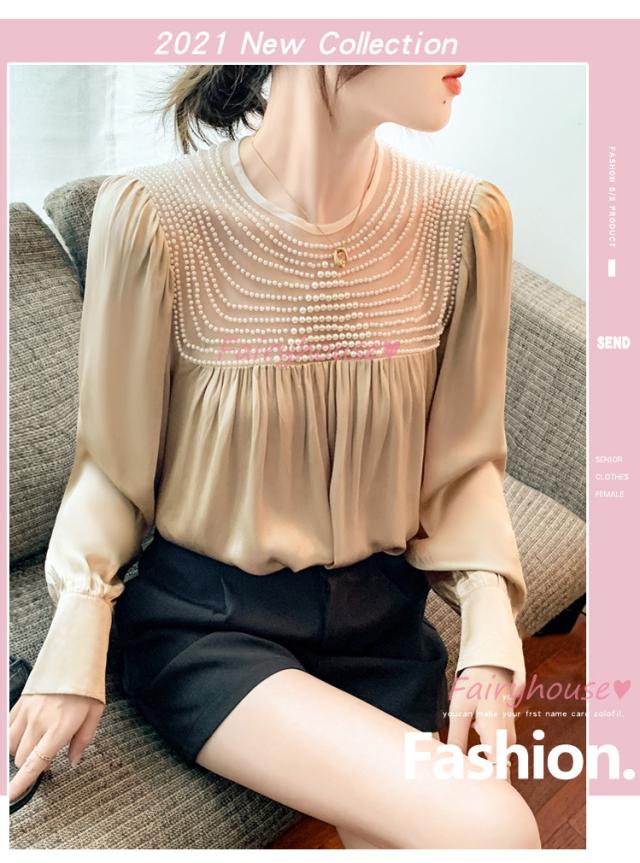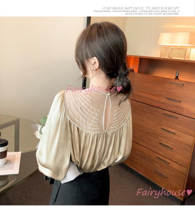 ブラウス レディース 長袖ブラウス 秋冬 オフィスシャツ 白パフスリーブ オシャレブラウス レショントップス 韓国風 大人 上品 通勤OL ゆったり 40代 50代