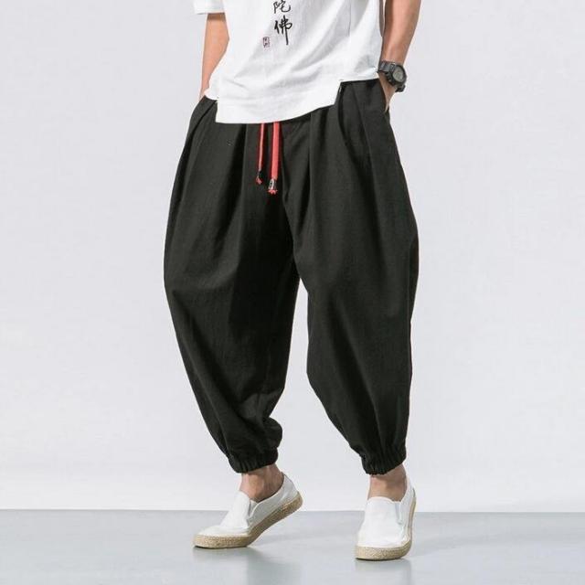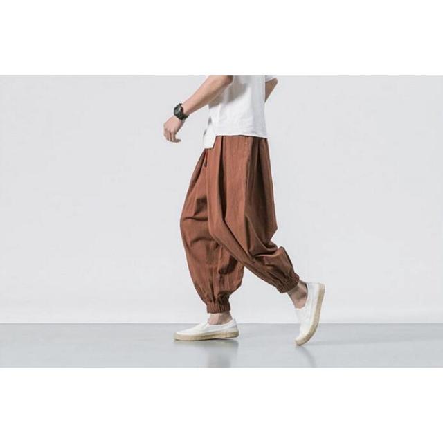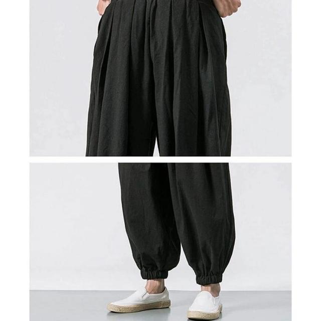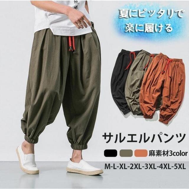 サルエルパンツ メンズ ロング ワイドパンツ 夏 ズボン 綿麻 パンツ ボトムス 父の日 男性 大きいサイズ リラックスパンツ カジュアル ナチュラル オシャレ 新作