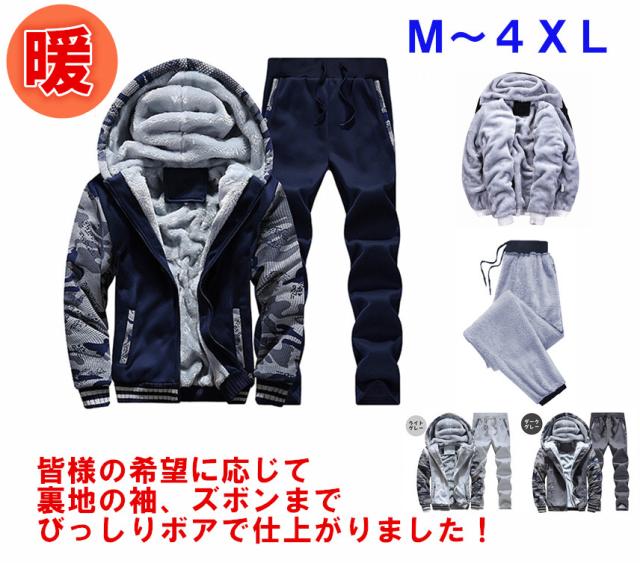 メンズ上下裏ボア付き セットアップ 秋新作 スウェットセットアップ 上下裏ボア付き 切替カモフラ柄メンズ 長袖 迷彩柄上下 裏起毛 ジップアップパーカー スウェット 上下セット 部屋着 防寒
