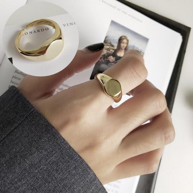 指輪 オープンリング 印台 レディース 女性用 シルバー925 アクセサリー シンプル オーバル かっこいい 太め ゴールドカラー 存在感 プレゼント