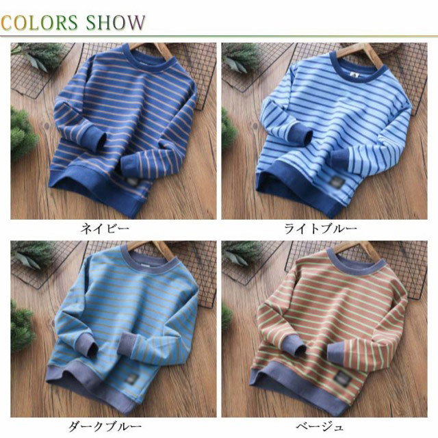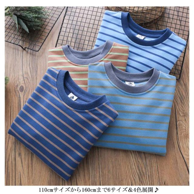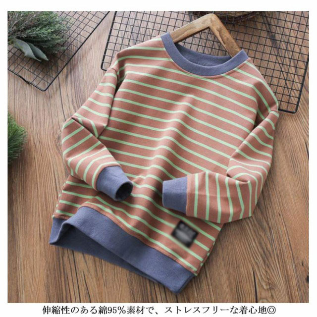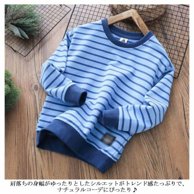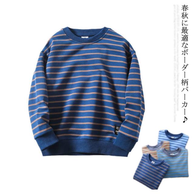 パーカー キッズ ボーダー柄 トレーナー 男の子 長袖 Tシャツ トップス ジュニア ボーイズ 子供服 ドロップショルダー スウェット ストレッチ ラウンドネック 送料無料 春服 秋 110cm 120cm 130cm 140cm 150cm 160cm