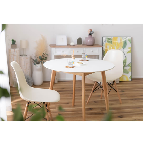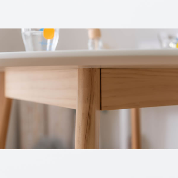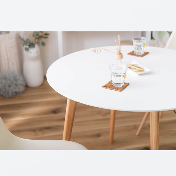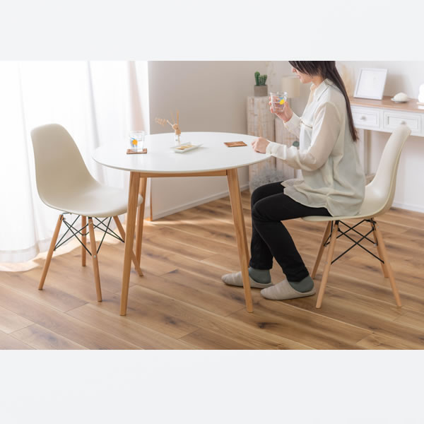脚がハの字に広がっているのでスッキリとしており、どんな種類のチェアとも組み合わせやすいテーブルです。
