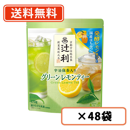 辻利 宇治抹茶入り グリーン レモン ティー 170g×48袋(12袋×4ケース) 抹茶 粉末 green tea 送料無料(一部地域を除く)