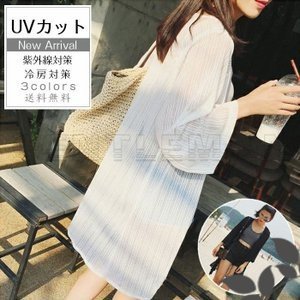 カーディガン レディース シフォン 七分袖 無地 ロング丈 透け UVカット 紫外線対策 冷房対策 薄手 トップス アウター サマー おしゃれ