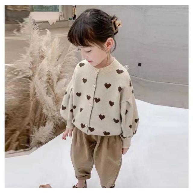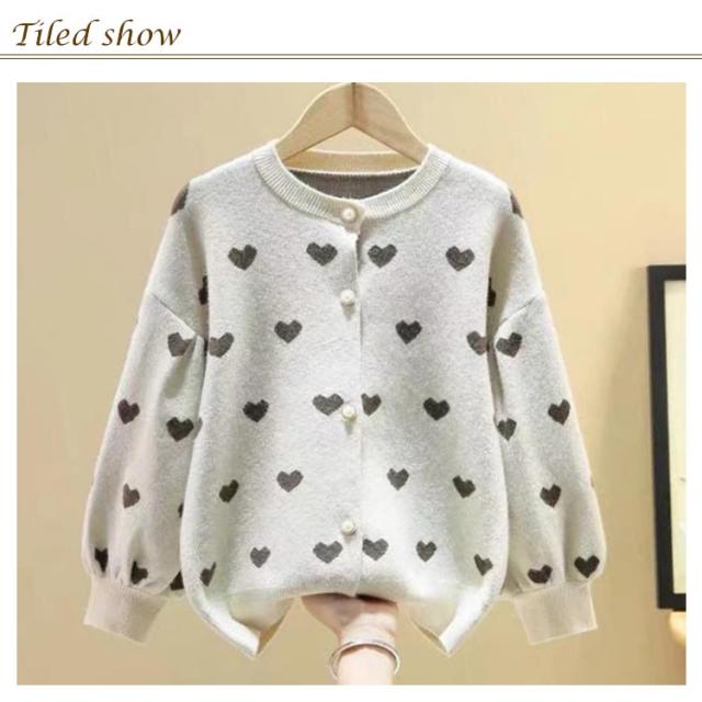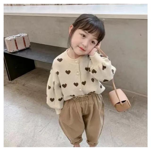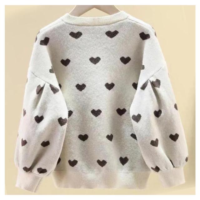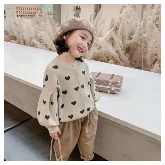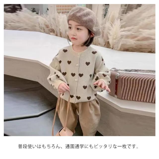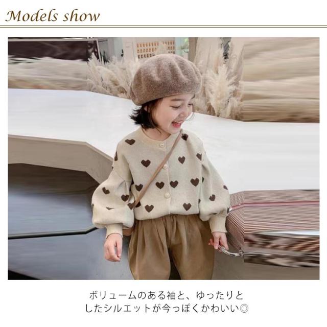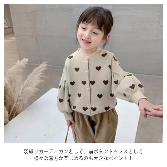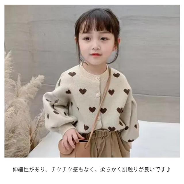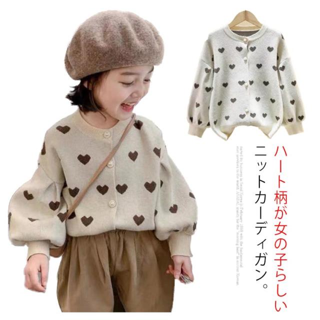 カーディガン 女の子 長袖 ニットセーター ニットカーディガン ハート柄 ボリューム袖 前開き 子供服 キッズ服 トップス アウター 送料無料 ゆったり ストレッチ カジュアル おしゃれ かわいい 春秋冬 秋服 通園通学