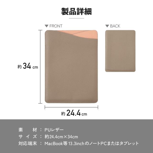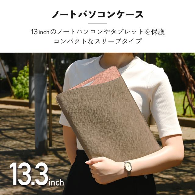 ノートパソコン ケース 薄型 スリム インナー カバー 13.3inch 縦型 バイカラー PUレザー 撥水 軽量 傷防止 衝撃吸収 端末保護