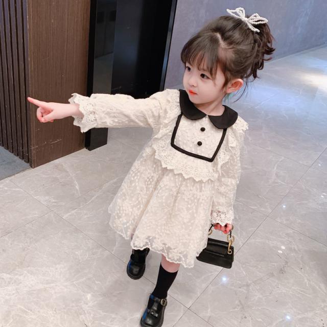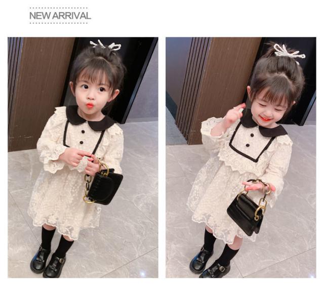 フリルレースワンピース 春用 女児 プリンセスワンピース えり 欧米スタイル おしゃれ スカート 子ども 3/4カップ
