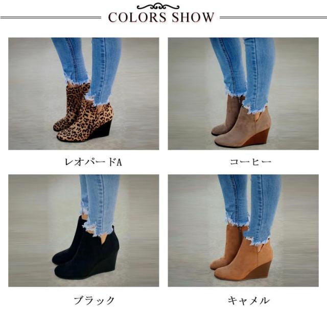 ブーツ ウェッジソール ショート ウェッジ スエード ヒョウ柄 レディース 秋 ショート おしゃれ 歩きやすい ショートブーツ 冬 ブーティー トレンド レディース靴 エレガント 靴