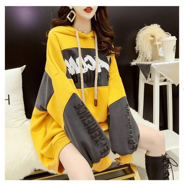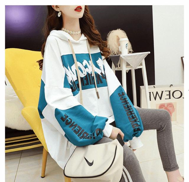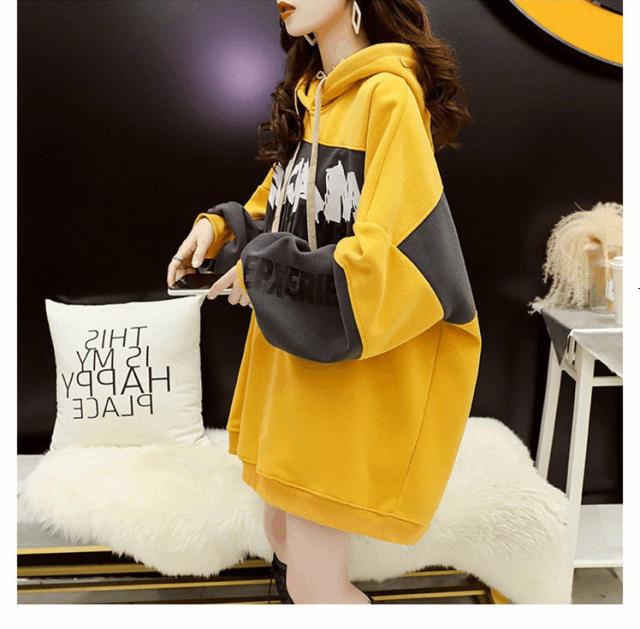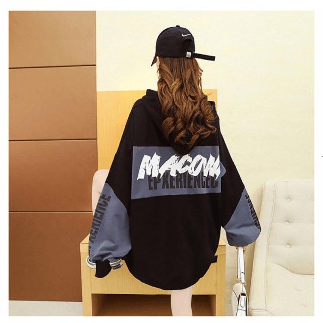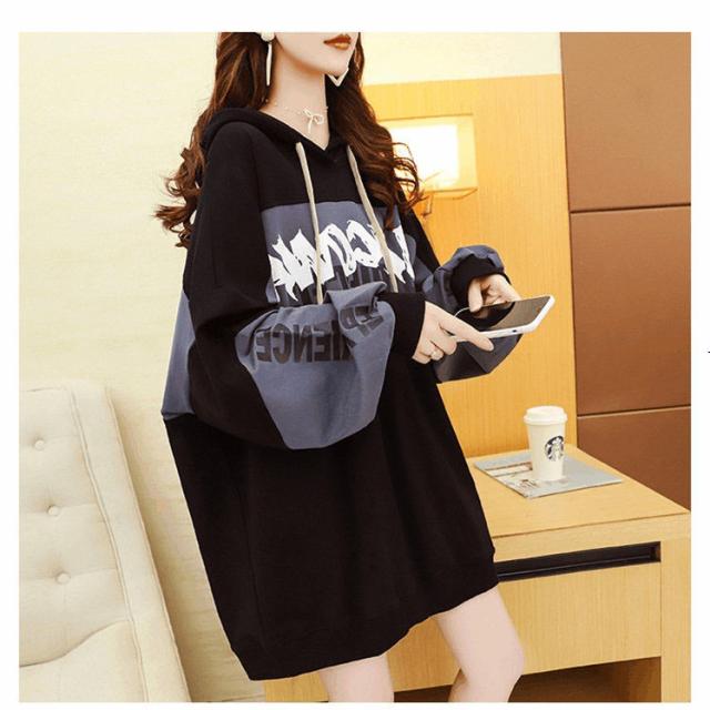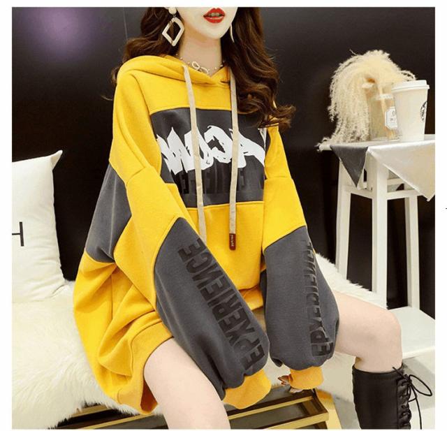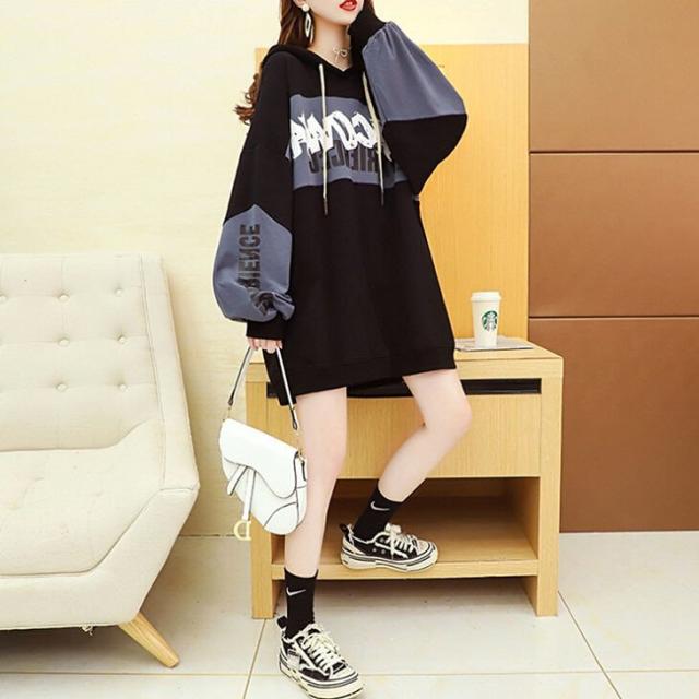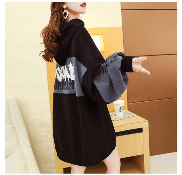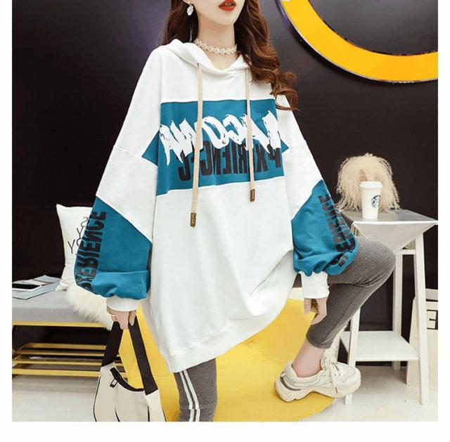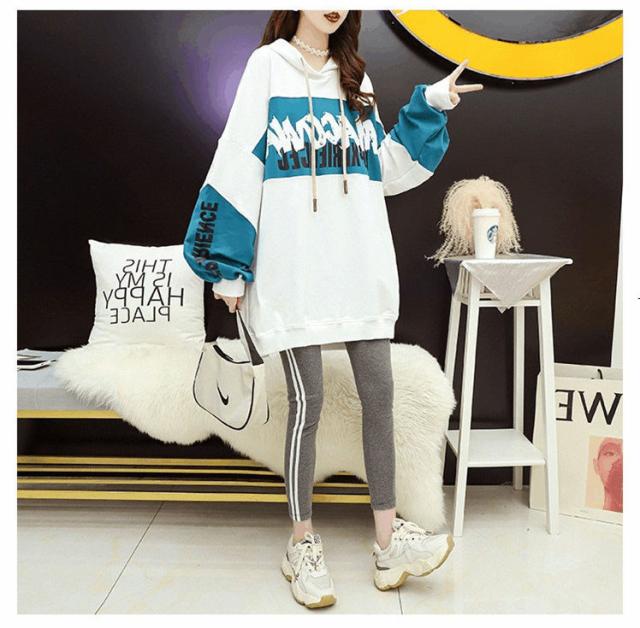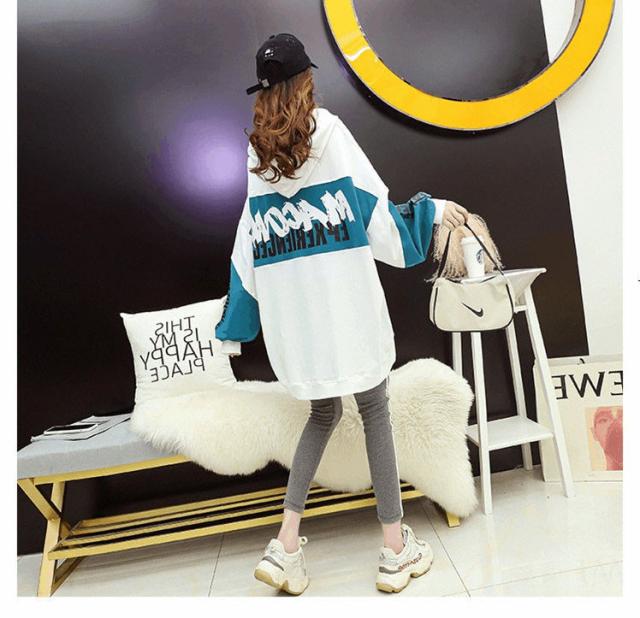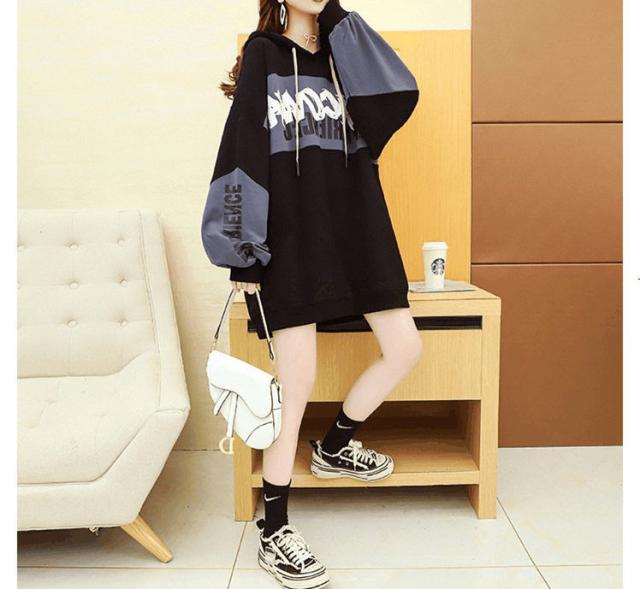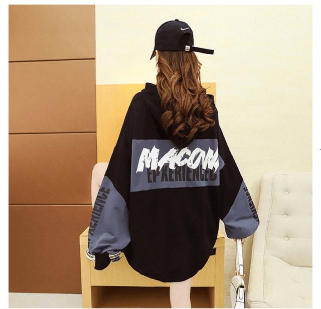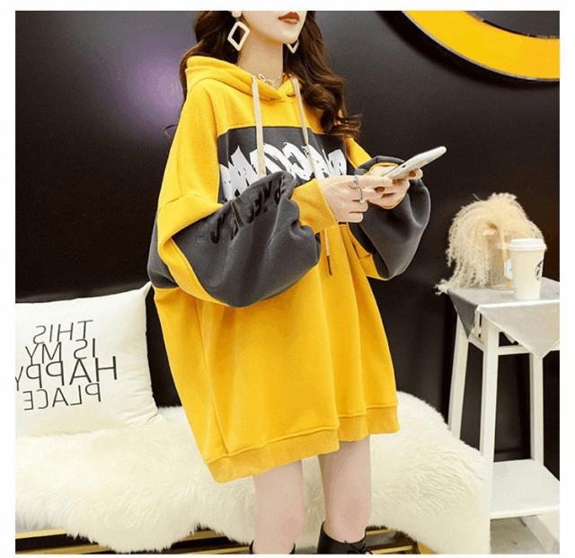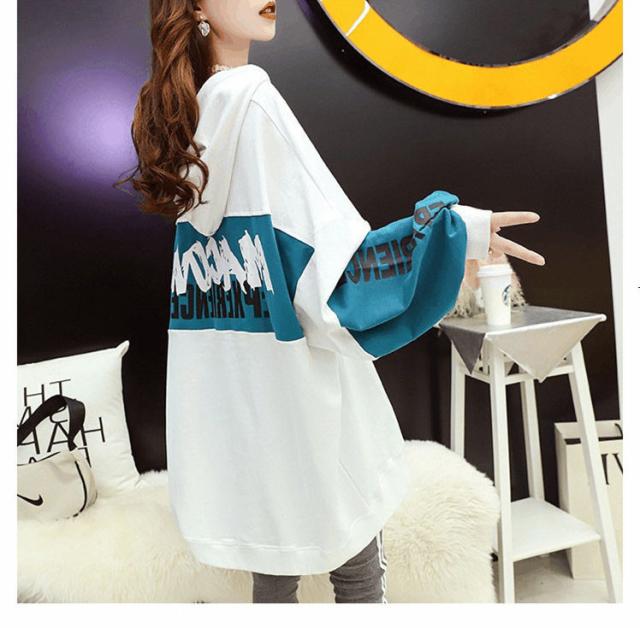 パーカー レディース ロングパーカ 秋 トップス スウェット 長袖 韓国風 40代 30代 英字柄 体型カバー