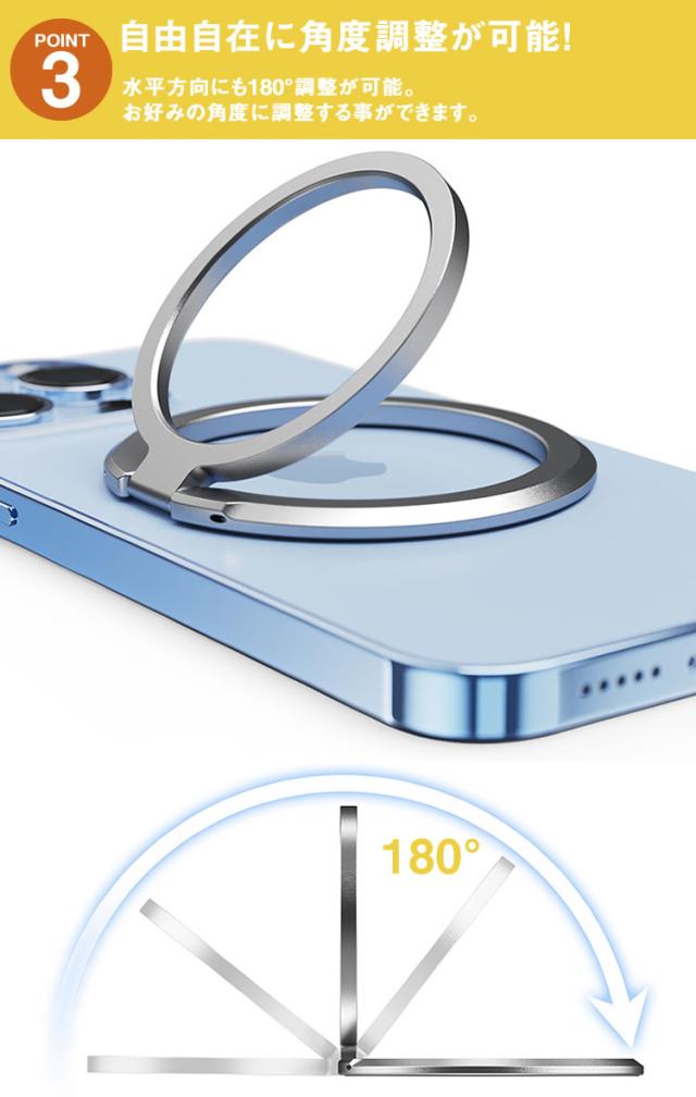 スマホリング 落下防止 Magsafe マグネット 磁石 マグセーフ スタンド リング ホールドリング 取り外し簡単 薄型 iPhone13 12 PR-SMRING22【メール便 送料無料】