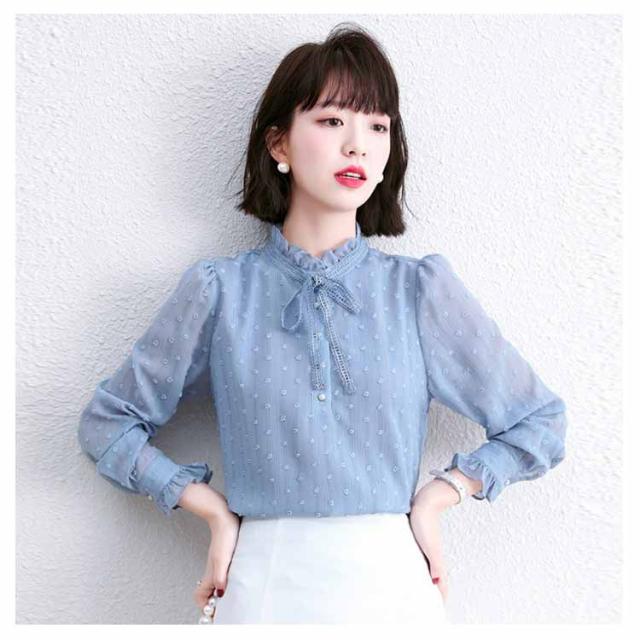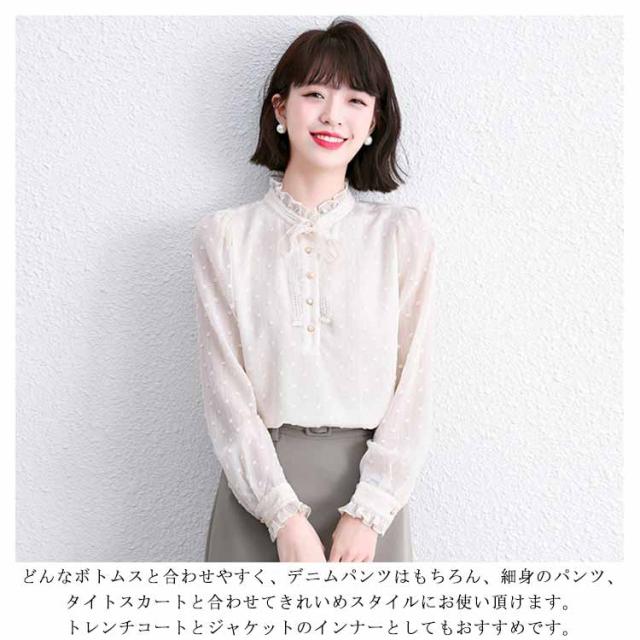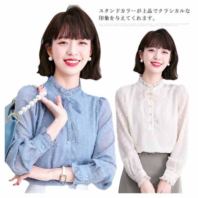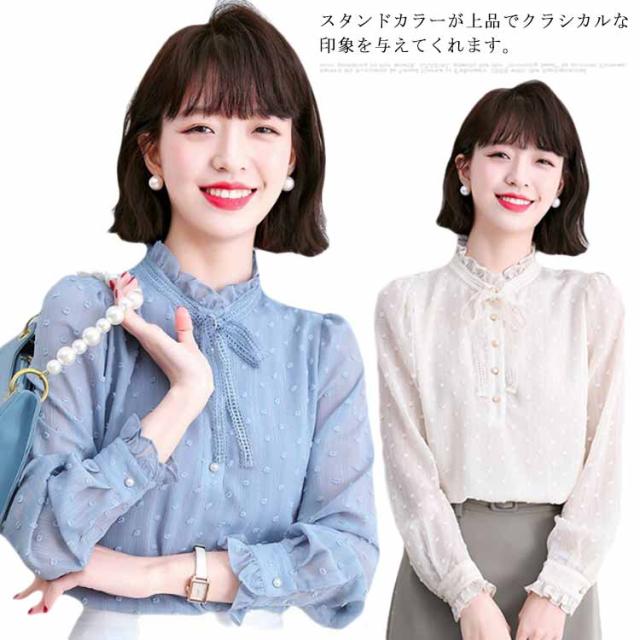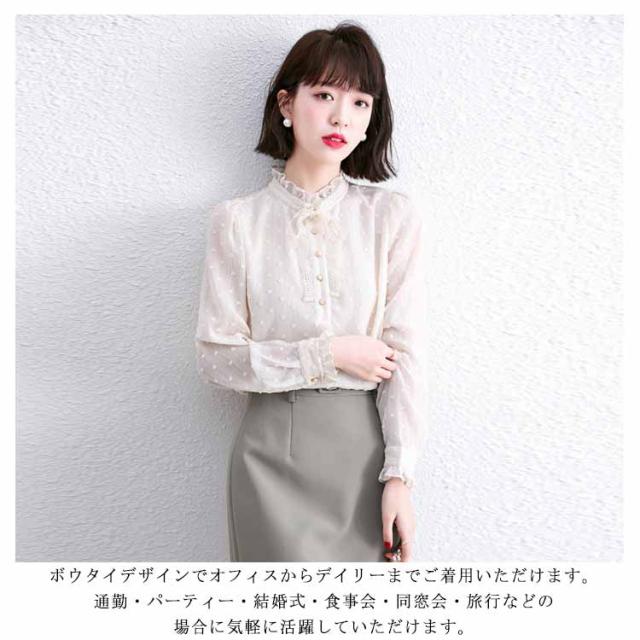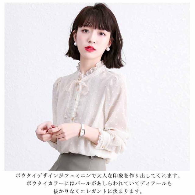 送料無料 ボウタイブラウス シフォンブラウス レディース シャツ トップス 長袖 ボウタイ 秋冬 春 立ち襟 レースアップ リボンタイ シースルー 襟 パフスリーブ フリル フェミニン 上品 きれいめ オシャレ 大人 20代 30代 プレゼント