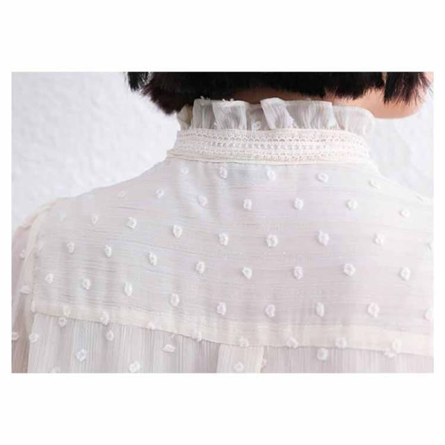 | スタンドカラーが上品でクラシカルな印象を与えてくれます。涙開きの後ろ姿で抜け感もプラスしました。袖の部分は程よく肌が透けるデザインになっているのでファッションセンスが大幅にアップします。 ボウタイデザインがフェミニンで大人な印象を作り出してくれます。ボウタイカラーにはパールがあしらわれていてディテールも抜かりなくエレガントに決まります。 どんなボトムスと合わせやすく、デニムパンツはもちろん、細身のパンツ、タイトスカートと合わせてきれいめスタイルにお使い頂けます。トレンチコートとジャケットのインナーとしてもおすすめです。 ボウタイデザインでオフィスからデイリーまでご着用いただけます。通勤・パーティー・結婚式・食事会・同窓会・旅行などの場合に気軽に活躍していただけます。 カラーはベージュ、ブラックやブルーの2色展開。落ち着いたトーンで女らしい雰囲気を演出します。 | |
