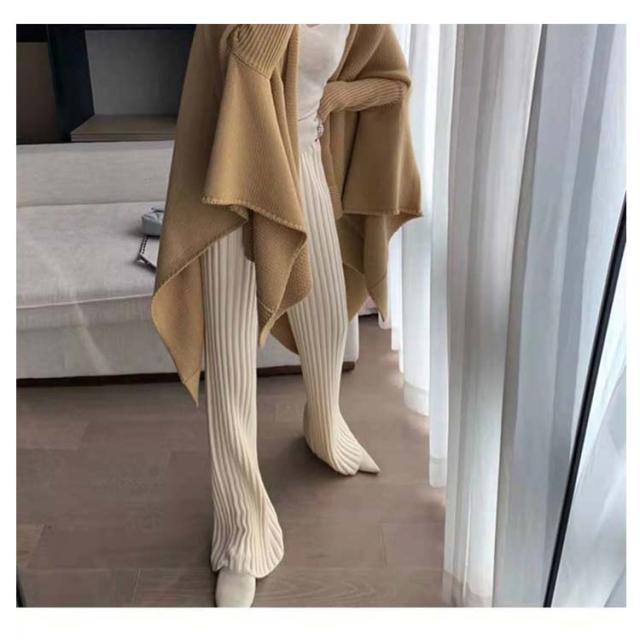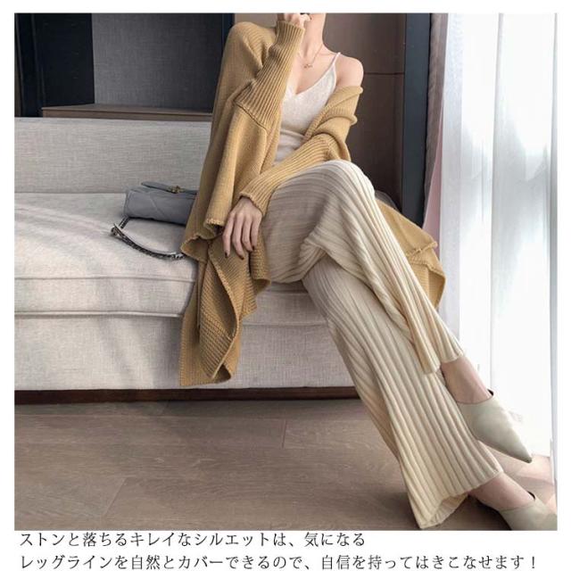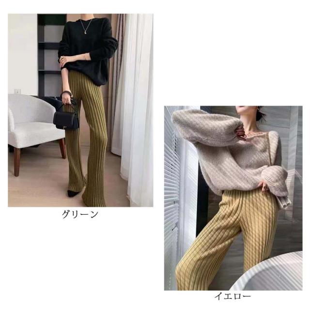 レディース ニット素材 秋 ニットパンツ リラックス 冬 リブニット ワイドパンツ リブニットワイドパンツ 春 ロングパンツ 長ズボン カジュアル イージーパンツ ストレートリブ ゆるパンツ フレアパンツ ガウチョ