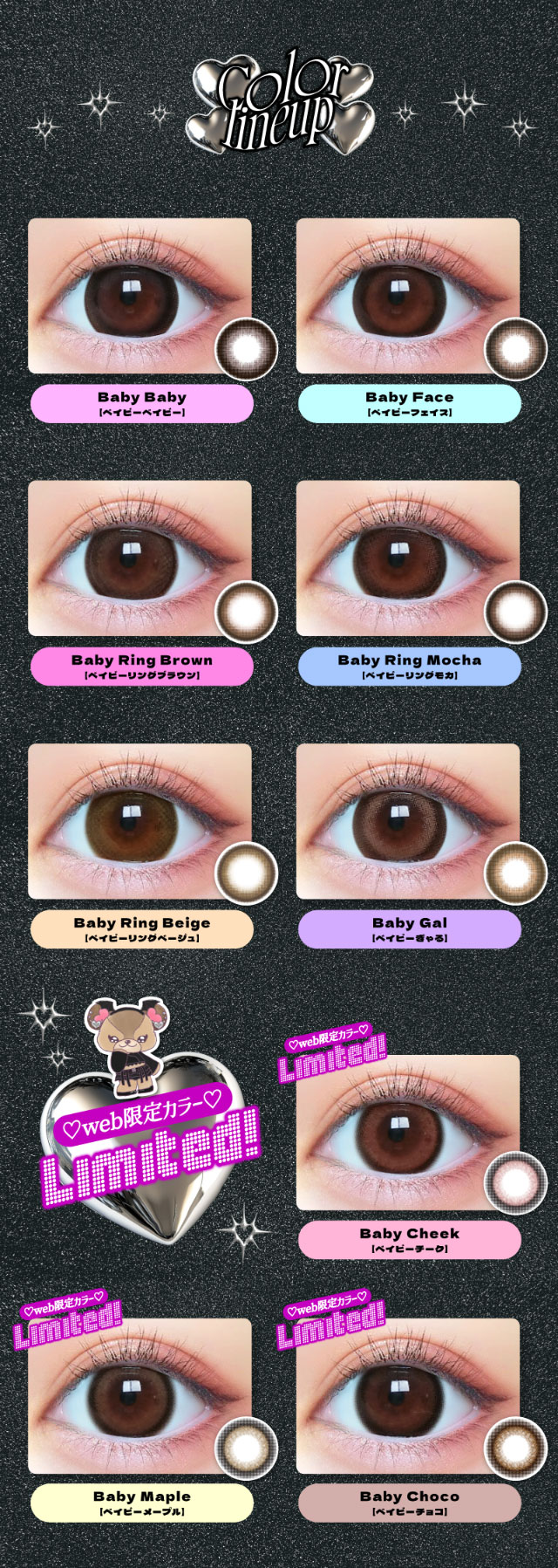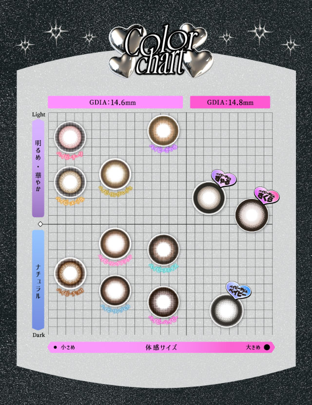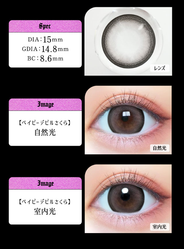 ◆着色直径 14.6mm(その他カラー) / 14.8mm(ベイビーデビルベイビー、ベイビーデビルさくら、ベイビーデビルぎゃる)