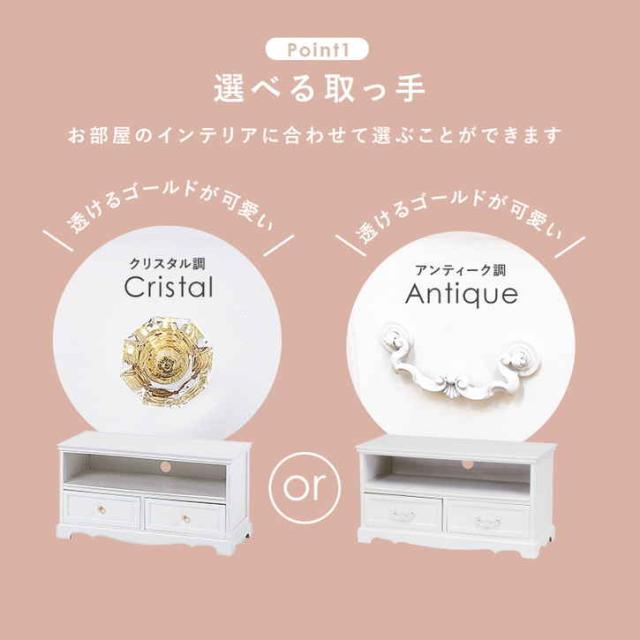 上品な白い取っ手が付いたテレビ台。