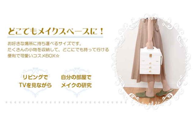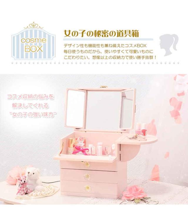 クリスタル型の取っ手が可愛い!三面鏡がついた大容量のコスメボックス。