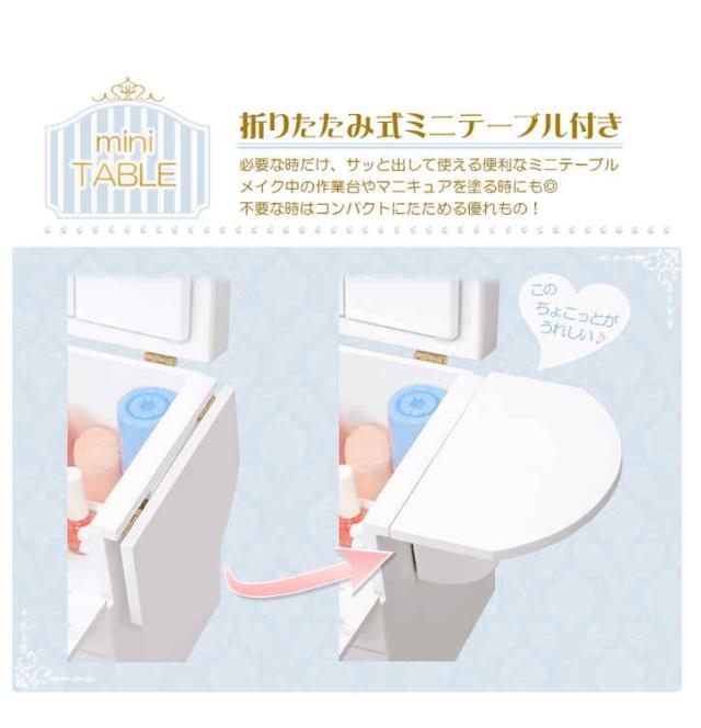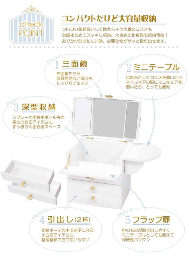 コスメ ボックス 三面鏡タイプ バタフライ式ミニテーブル付き メイクボックス 大容量 鏡付き 木製 三面鏡 かわいい 姫系 引き出し コンパクト ドレッサー 完成品 サイドテーブル 北海道追加送料 沖縄・離島別途送料見積もり メーカーより直送 MUD-6835