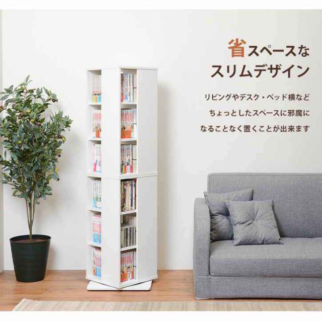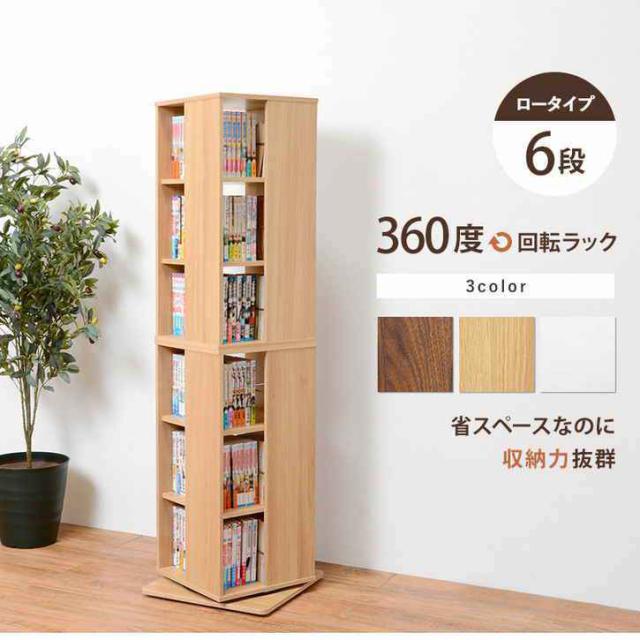 360度回転 タワー型 コミック ラック 6段 本棚 回転 回転式 回転ラック 大容量 おしゃれ スリム 6段 本棚 本 収納 ラック コミックラック 漫画 収納 回転式本棚 DVD CD 北海道追加送料 沖縄・離島別途送料見積もり メーカーより直送 RCC-1024