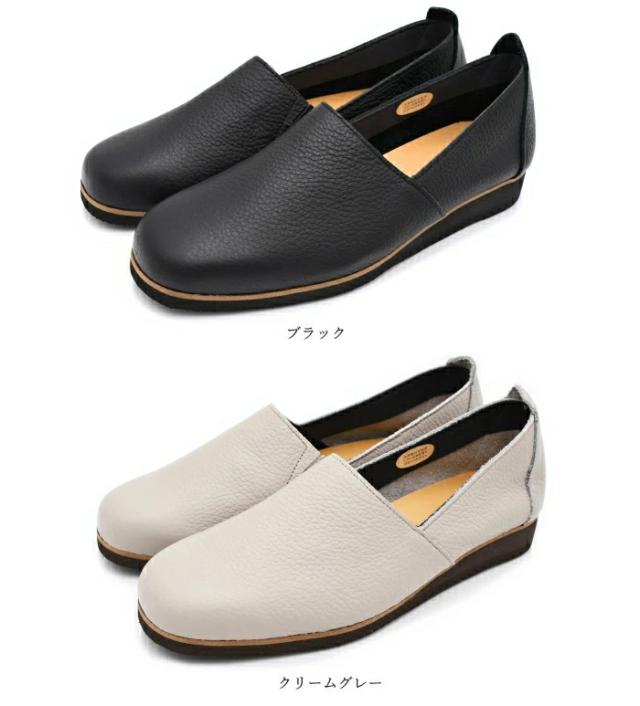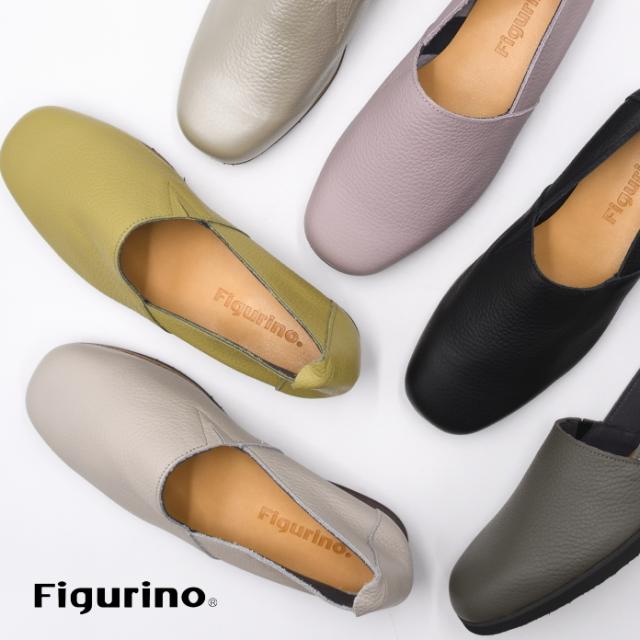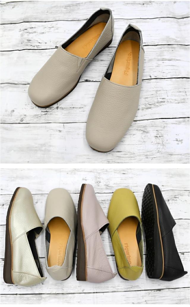 Figurino フィグリーノ Lカットスリッポン FT-6 日本製 本革 軽量 レザー フラットシューズ 幅広 3E ゆったり レディース 靴 ブラック 黒 婦人靴